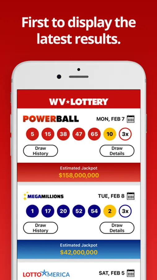Get the latest West Virginia lottery results within minutes of the draws taking place. This easy-to-use app includes the following lotteries: