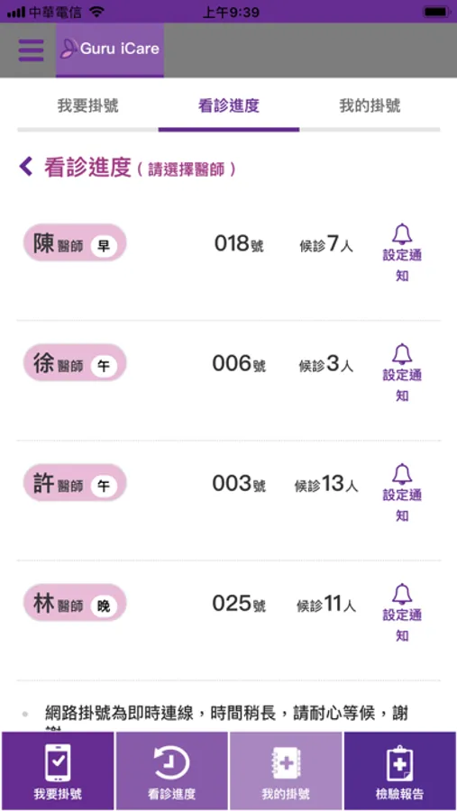 2.即時查詢看診進度,讓您隨時掌握最新看診進度。