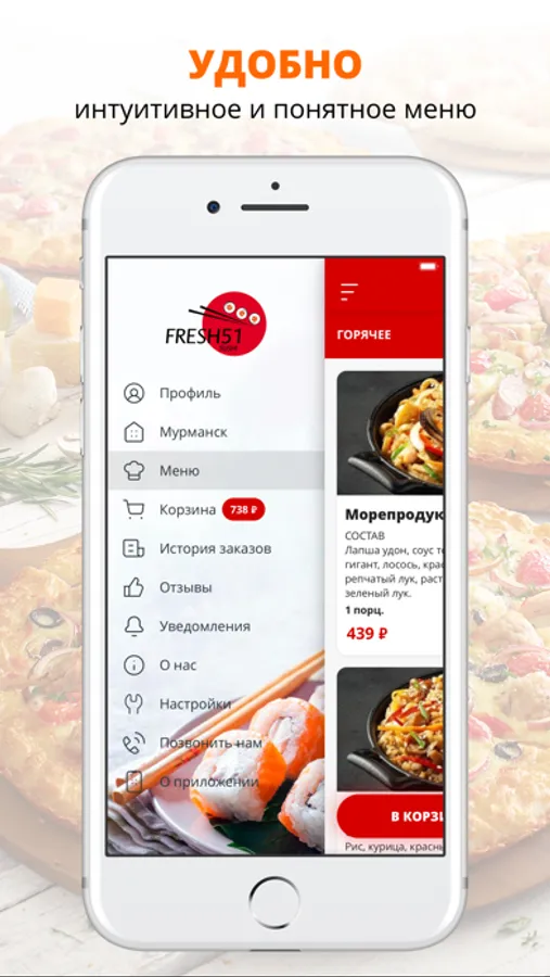 Приложение Фреш Бар — это удобный способ заказа еды домой или в офис! Мы готовим наши блюда из качественных свежих ингредиентов и доставляем еду по Мурманску быстро и бережно.