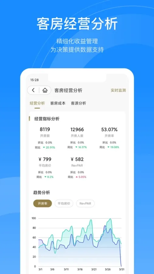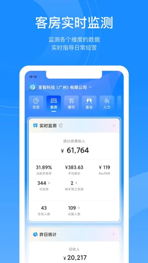 为酒店提供酒店日常任务管理、数据中台、目标管理、经营管理等一站式管理;