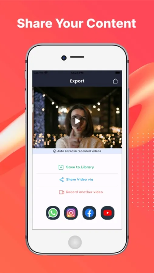 Export your recorded videos to your device's gallery/library and other platforms with ease. Share your content and expand your reach across multiple platforms.