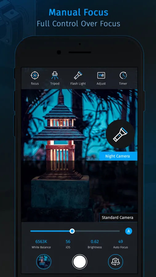 Night Mode Camera is ready to do that at the lowest luminosity without any additional appliances. With low light support during the photo/video recording, you can dynamically change camera sensitivity to achieve the best result.
