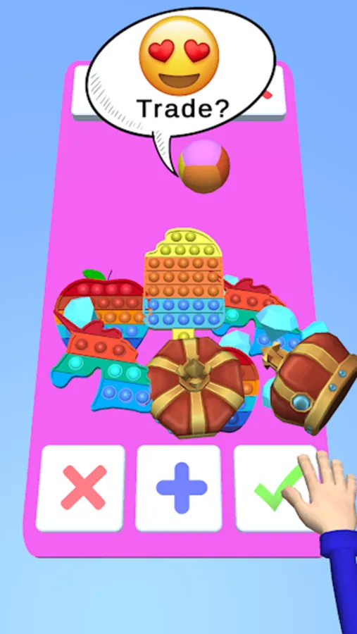 Simple mechanics. There are only three options: accept, reject, demand more. Obtain new colorful fidgets in one click. Fidget trading has never been easier and better.