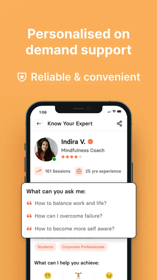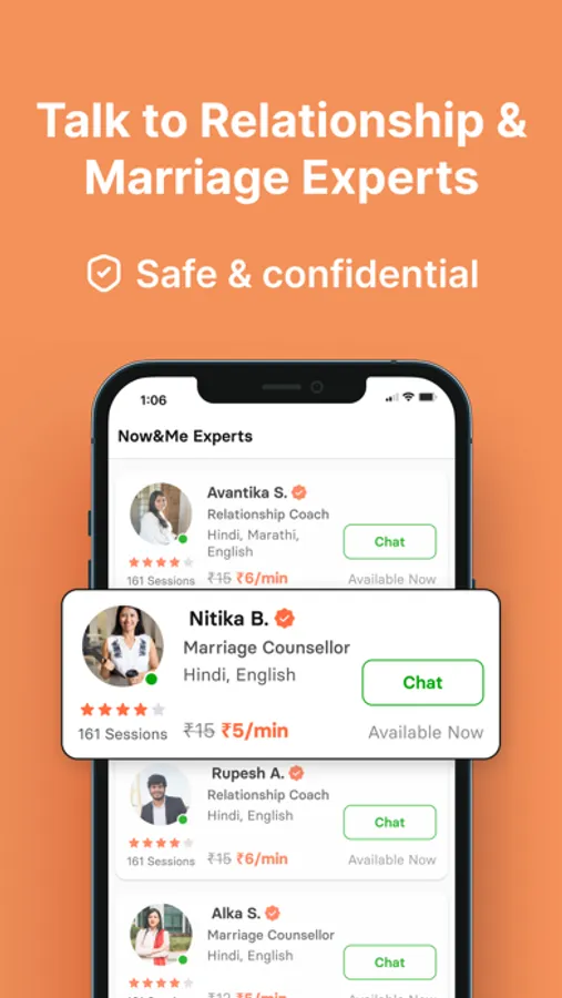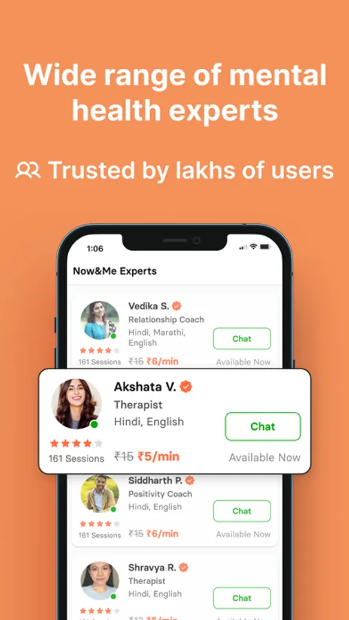Create an on Now&Me to connect to a professional of your choice & start talking within seconds.