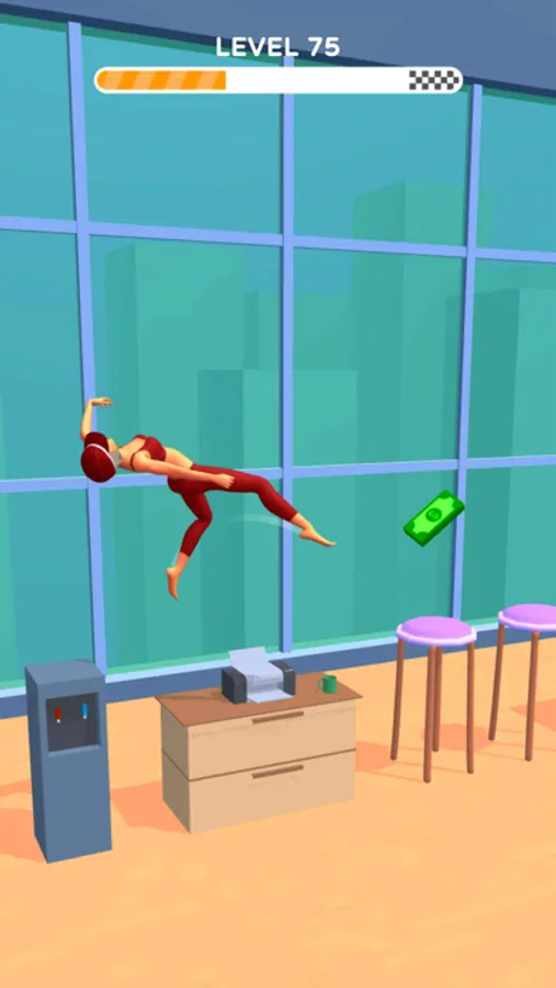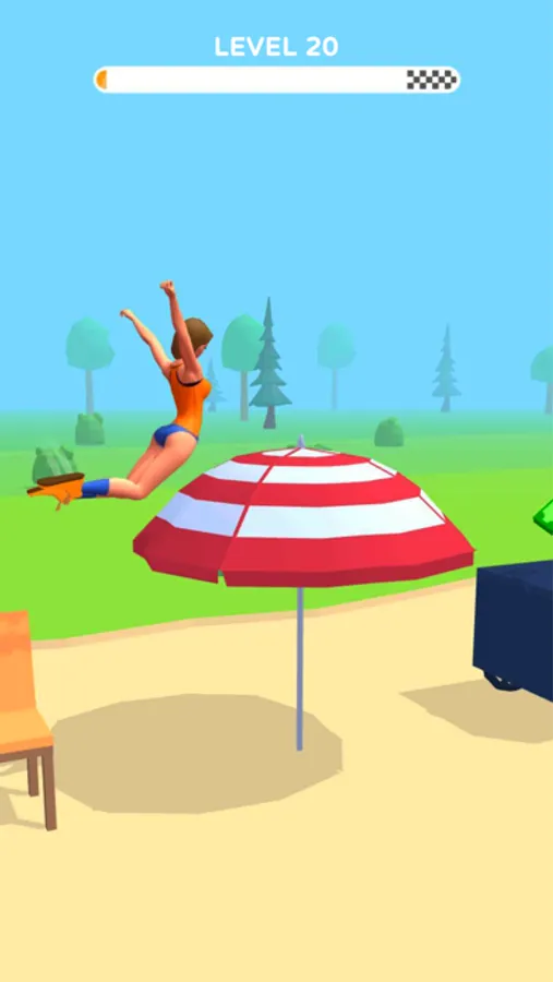 Explore rooms with different furniture like tables, chairs, bottles, shelves, freezers, lamps, and other obstacles that can get in your way to bed. Flip the ragdoll body over anything like doing a water bottle flip.