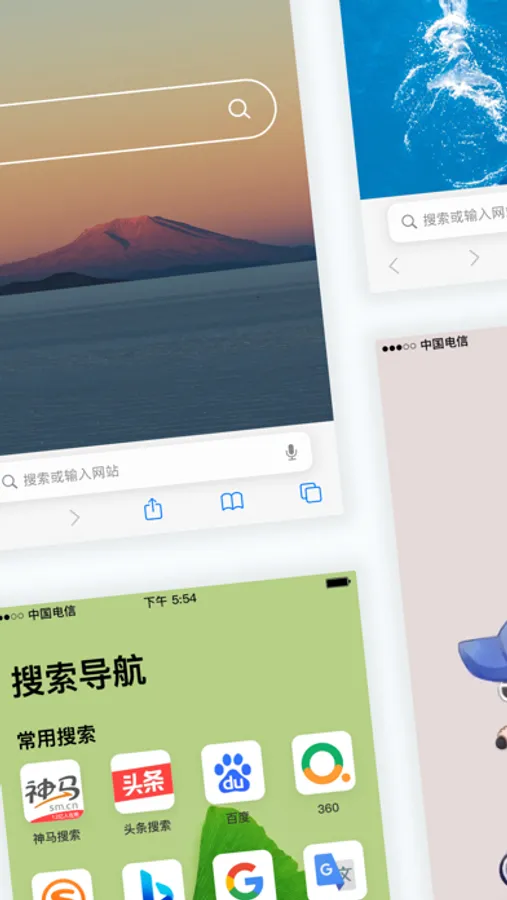 百度、bing、Google、神马、今日头条、知乎多种搜索一目了然,一键直达。