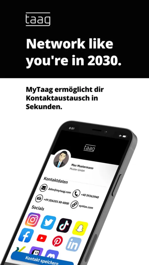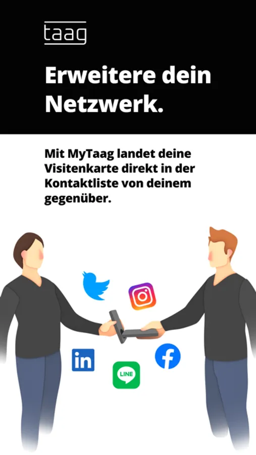 Erweitere dein Netzwerk: Mit MyTaag sorgst du dafür, dass deine Visitenkarte nicht mehr im Müll landet, sondern direkt in der Kontaktliste von deinem gegenüber.