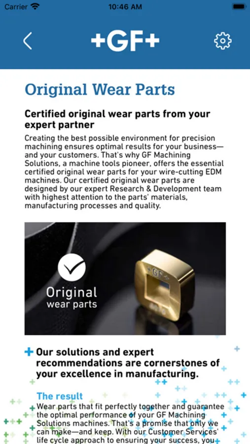 Discover the portfolio of certified wires and original wear parts from GF Machining Solutions that will allow you to operate you machine at peak precision and performance. Products offered by GF Machining Solutions will allow you to reduce your production costs thanks to higher performances and lower non quality costs.