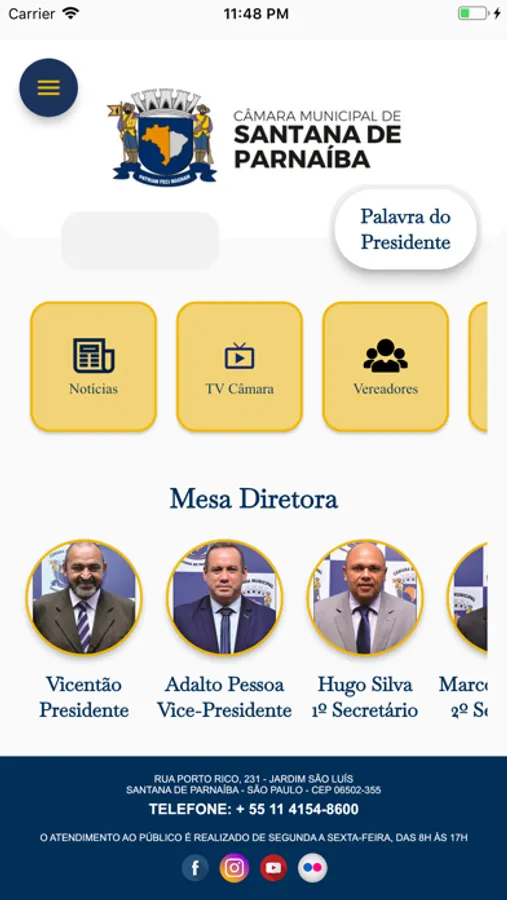 Contato com os vereadores, história da Câmara, Ouvidoria, notícias e TVCâmara.