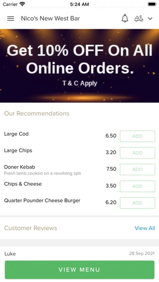 Nico's New West Bar in West Bars will always be offering great food at affordable prices. Please feel free to browse our new app and place your order online. Remember to check our new online ordering site to get up to date prices and exclusive special offers, limited to our online customers only!