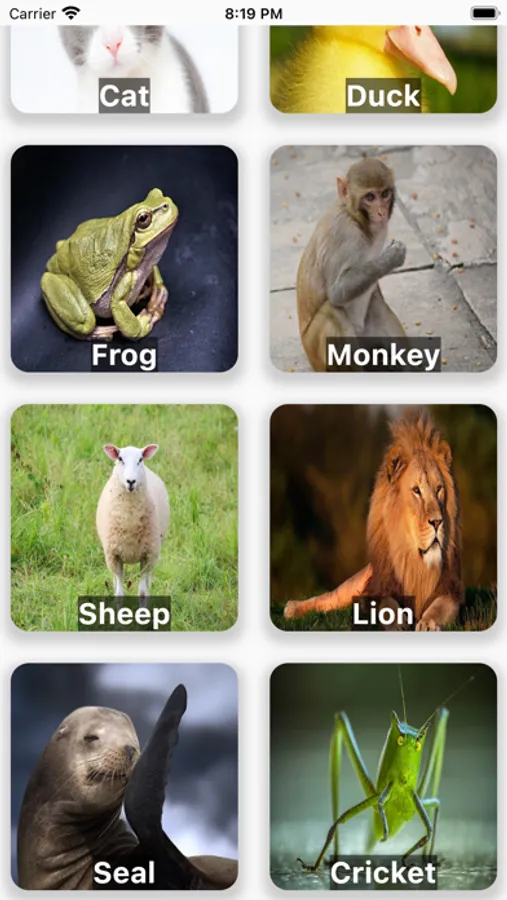 An early childhood app for learning the sounds of animals.