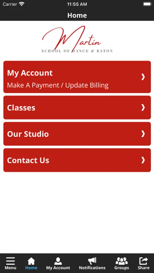 The Martin School of Dance & Baton app allows you to manage your account with ease, register for classes, drop-ins, and special events. You'll also receive important notifications about class changes, closings, registration openings, special announcements, and upcoming events.