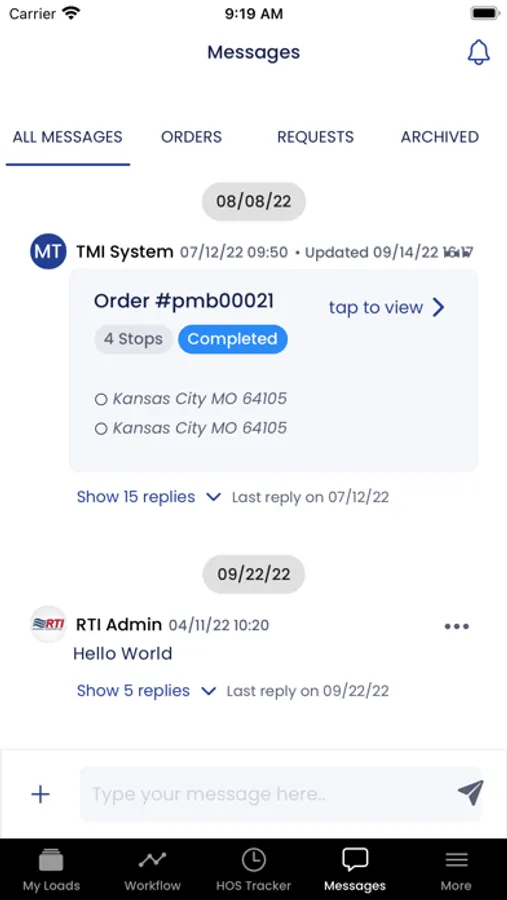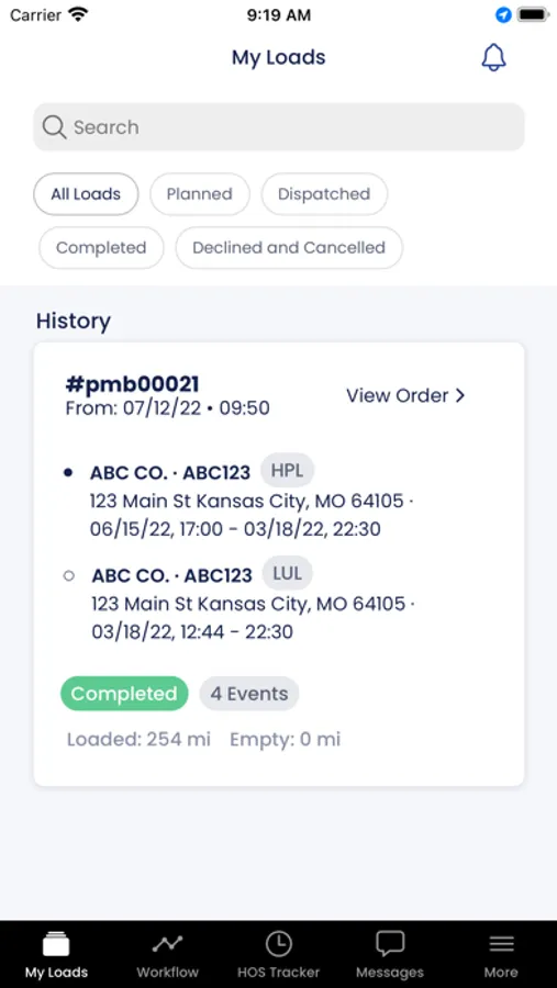 An app to help manage, dispatch, and track orders for a trucking fleet.