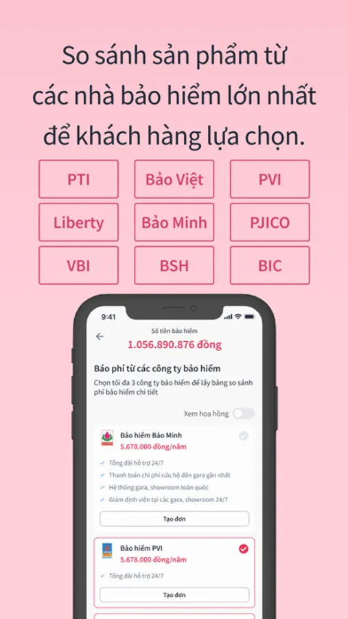 - Tích hợp sản phẩm bảo hiểm từ các nhà bảo hiểm hàng đầu Việt Nam: PVI, PTI, PJICO, BSH…