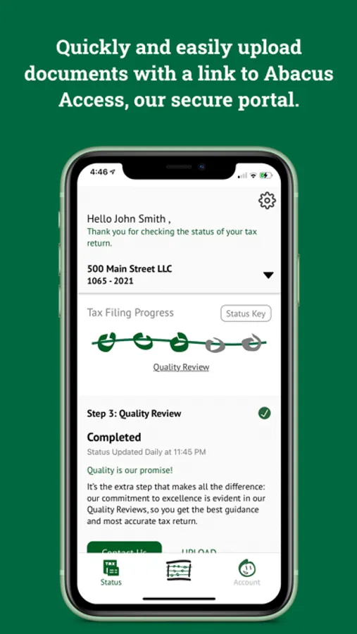 Conveniently check your return status from anywhere on your smartphone or tablet. You’ll be able to track the status of your return in real-time, with easy access links to upload your documents, make payments online to Abacus CPAs, LLC and the IRS, review resources to help answer your questions, and communicate with the Abacus team!