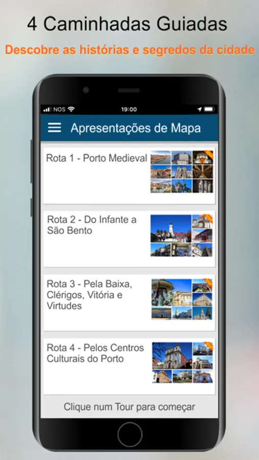 Tens 4 tours à escolha que te permitem explorar os diferentes bairros do centro histórico do Porto. Os itinerários e os locais são apresentados no mapa para facilitar a orientação. Cada ponto no mapa conta a história desse local ou monumento, numa narrativa acompanhada por imagens ou vídeos. Podes seguir a sequência natural da rota, selecionar da lista ou escolher o ponto de interesse explorando o mapa.