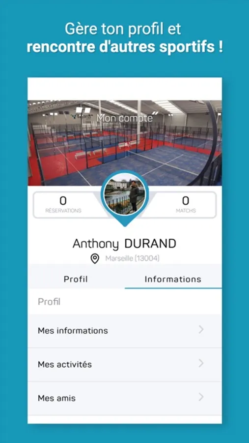 3. Tu peux discuter avec le joueur inscrit (pour te renseigner sur le niveau, demander un covoiturage...) ;