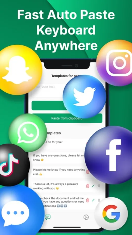 Too often we use the same daily phrases in our text messages! Now, with the help of "Fast Auto Paste Keyboard+Clipboard", you can easily add frequently used text or phrases to templates for the purpose of quick insertion them into new messages!