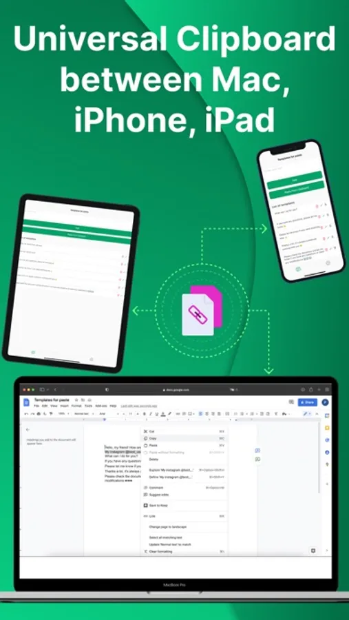 It provides you with the ability to create your own templates for text paste on Mac, iPhone, iPad, or iPod as well as easily and conveniently add it to your iPhone, Pad, or iPod using the Universal Clipboard.