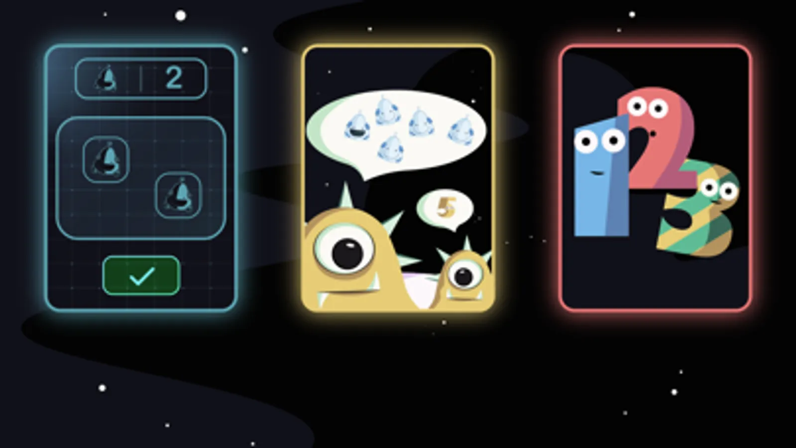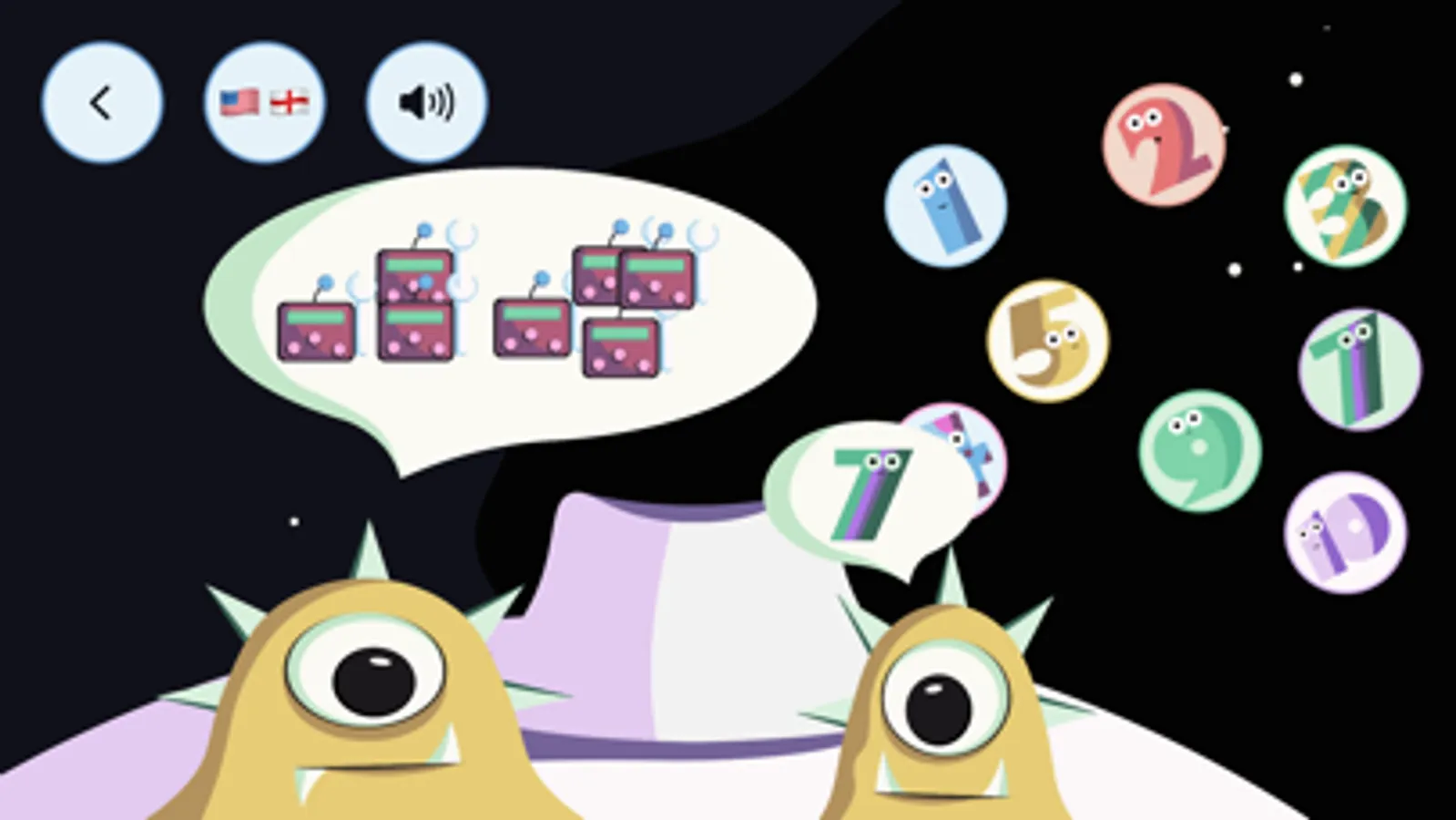 "Playfully learn numbers" provides games to learn the numbers. With cute drawings, each number gets its own individual character.