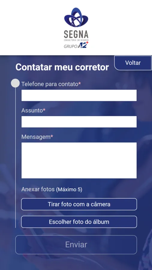 * Enviar fotos/imagens do sinistros ou documentos;