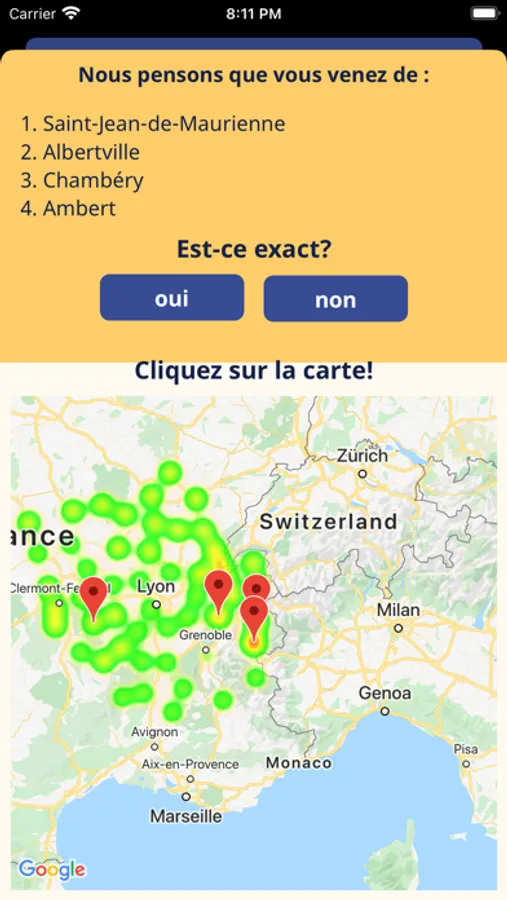 >> Le volet Localisez-moi repose sur les résultats d’enquêtes auxquelles des dizaines de milliers de francophones ont pris part depuis 2015 dans le cadre des enquêtes "Français de nos Régions". D’une région à l’autre, si la précision n’est pas la même, c’est parce que nous n’avons pas toujours assez de données pour que l’algorithme soit plus précis. Grâce aux réponses que nous allons recueillir, nous pourrons bientôt mettre au point un nouvel algorithme de géolocalisation, plus performant !
