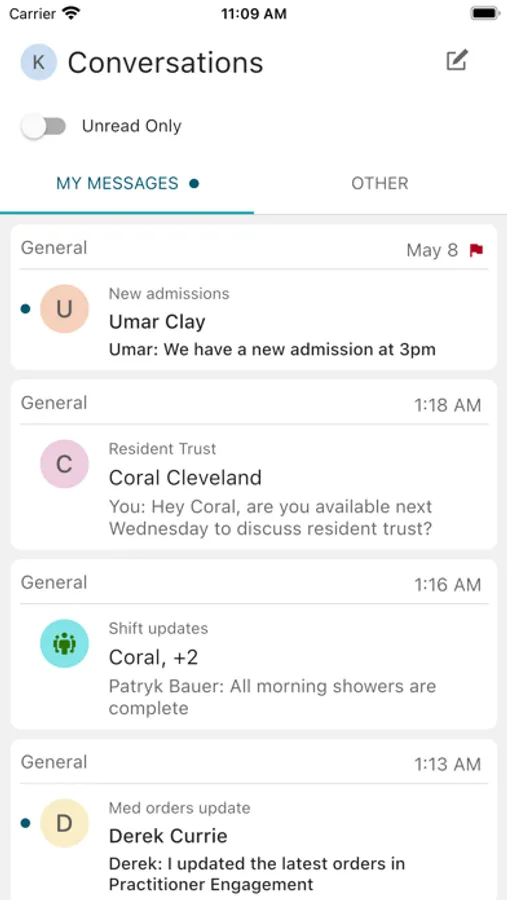 * faster response times between healthcare providers through resident-specific or general conversations.