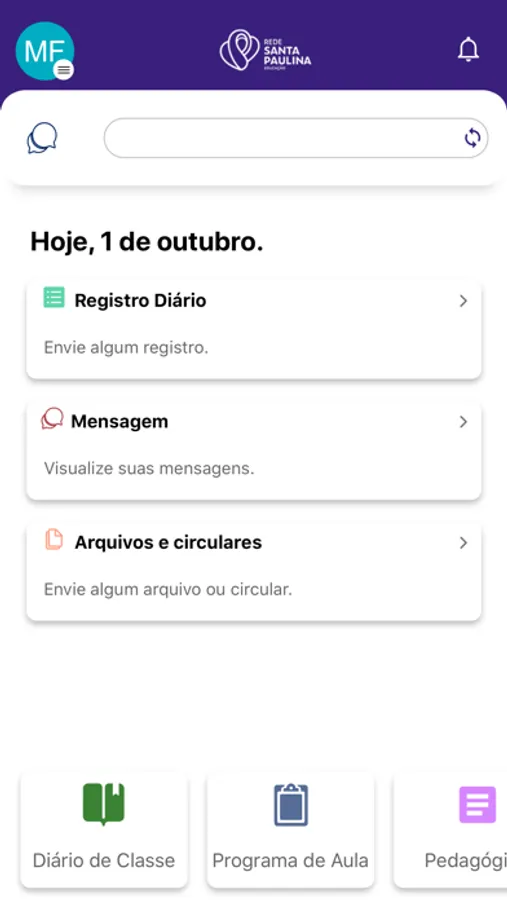 • Consulta ao registro diário para os pais acompanharem a rotina do estudante como alimentação, higiene e sono.