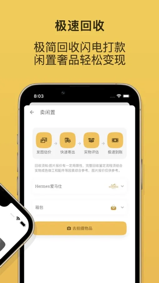 回收服务 - 闲置奢品保值回购,提供图片估价师报价,同意报价邮寄实物给较真鉴定中心,鉴定为正品后给出最终报价,同意即打款,极速回血买新款。
