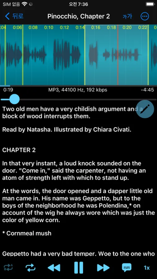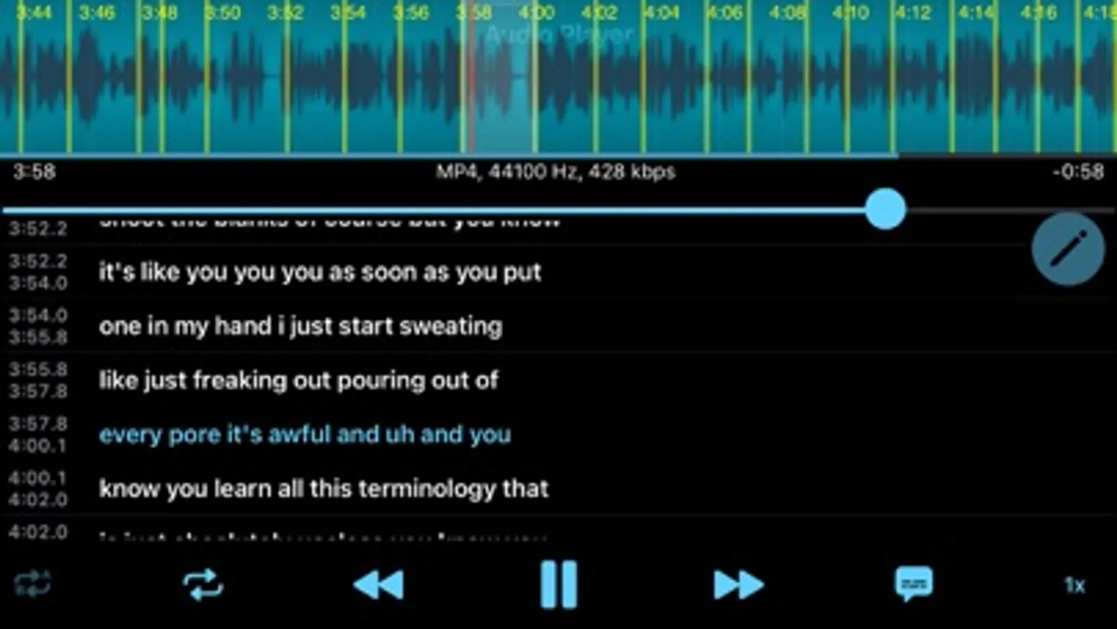 It reads audio files or mp4 video files such as mp3/m4a/wav/FLAC supported by iOS and shows the waveform, allows you to listen to them visually, and automatically recognizes and shows the voice segments, making it easy to know where the sentence starts and ends.