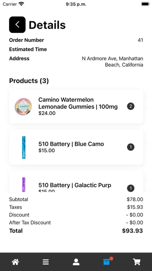 Our delivery app makes ordering cannabis fun and easy. It features a beautiful menu, where you can search for your favorite products by category and brand. All customers will be automatically enrolled in our ViP reward program and will receive points for every dollar spent, which you can use to redeem free products during checkout. You can also track your drivers progress directly in the app and receive notifications regarding your order's status. Enjoy the luxury of staying home and having our professional staff bring your order directly to you at no additional charge.