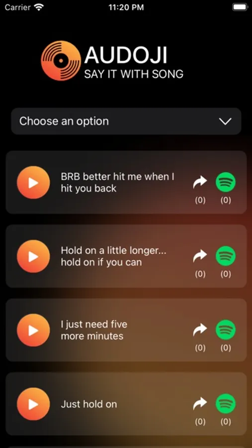 Spice up your texts and express yourself with a song. Search the Audoji database for commonly used phrases and responses to everyday texts. This user friendly interface allows for quick and easy integration into your text or iMessage convos. And who knows... you might even discover a new band or artist along the way.