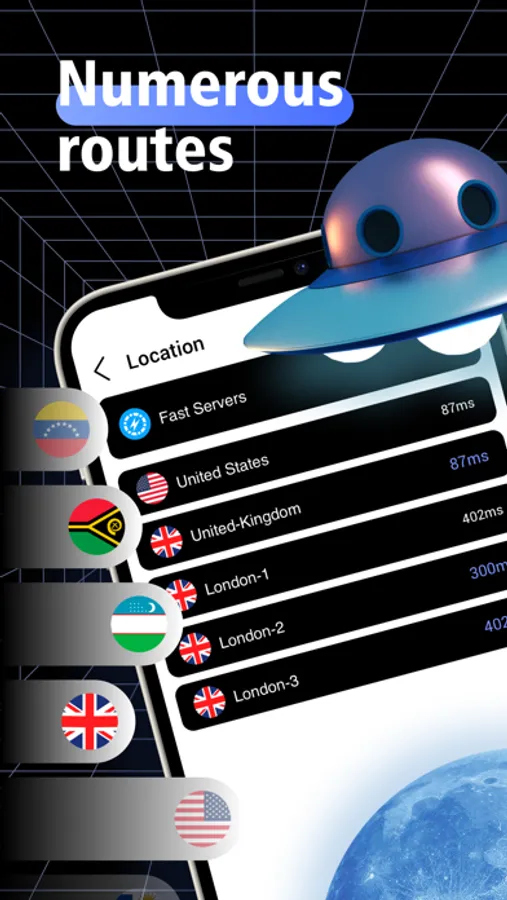 2. A huge network of servers including the USA, UK, Canada, France, Australia, etc.