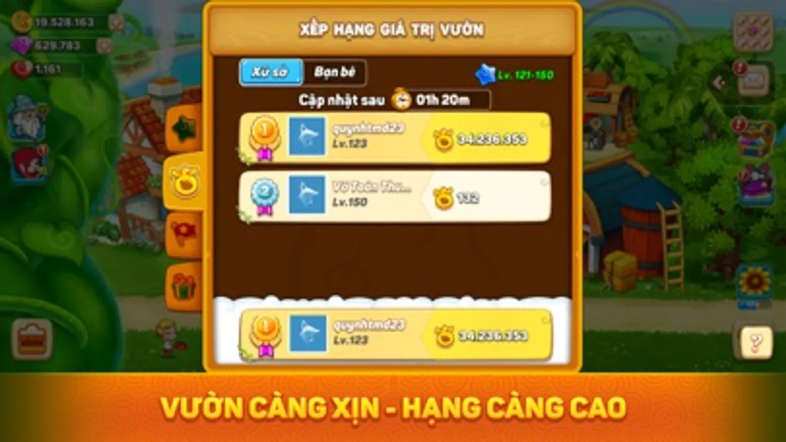 Tham gia trồng cây và buôn bán nông sản cùng bạn bè ở khắp nơi. Cùng nhau tranh tài ở các bảng xếp hạng, so xem vườn ai xinh hơn!