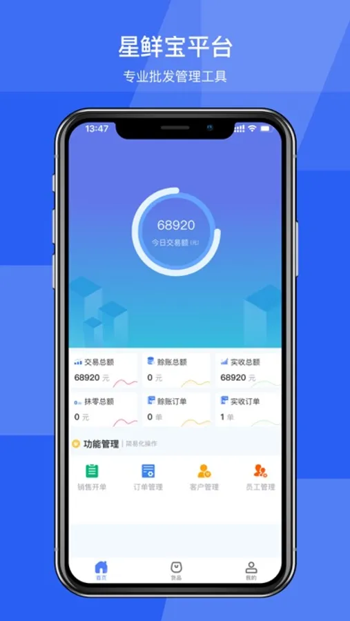 星鲜宝App是一款专业的果蔬批发货品管理平台。其产品包括: 多门店,供货商,货品库,采购入库,库存盘点,实时库存,销售开单,订单管理,客户欠款,运营数据报表等核心功能,方便用户快速开单,赊账催收,历史运营数据实时汇总分析等服务,帮助用户解决运营效率低,管理成本高等问题,让用户轻松工作,让老板轻松管理。