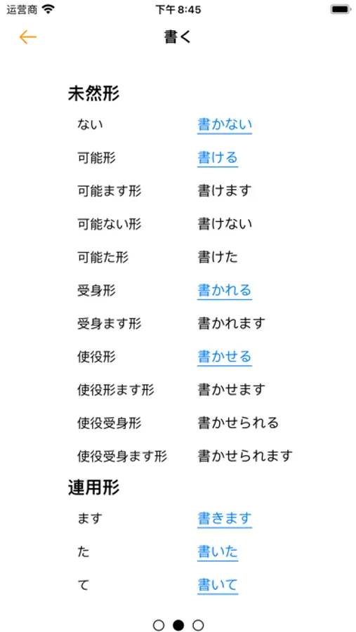 A practical dictionary for Japanese, supporting 100,000+ words, nearly 1,000 grammatical phrases from N1 to N5, and verb morphing! Can get the 18 common tenses such as ます形, ない形, た形, て形, 意意形, 命令形, 條件形, 可能形, 受身形, 使役形, etc. at any time!