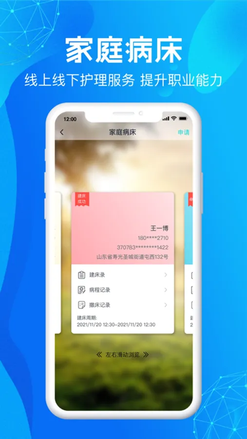【护理服务】患者线上下单后,护理人员可通过线上接单,然后线下上门护理服务为患者提供优质的安全的专业的服务。