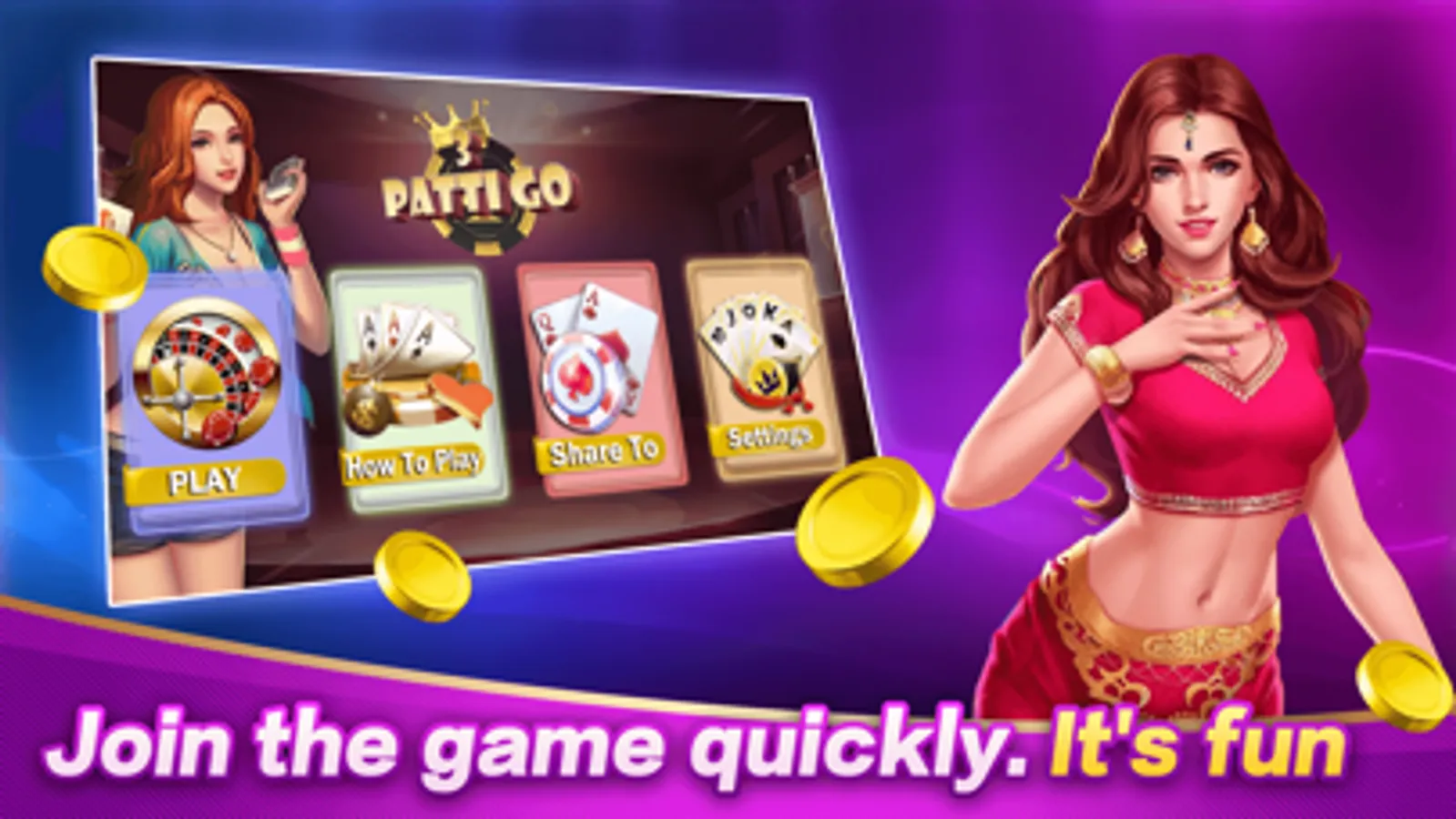 Play 3 Patti GO anytime anywhere with millions of real players.Invite and challenge your friends to join our Teen Patti free game.