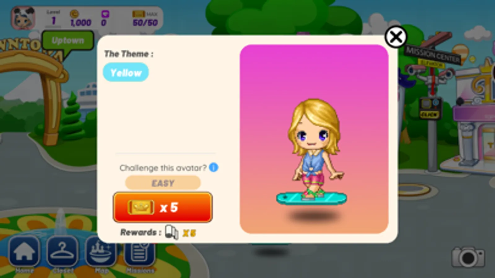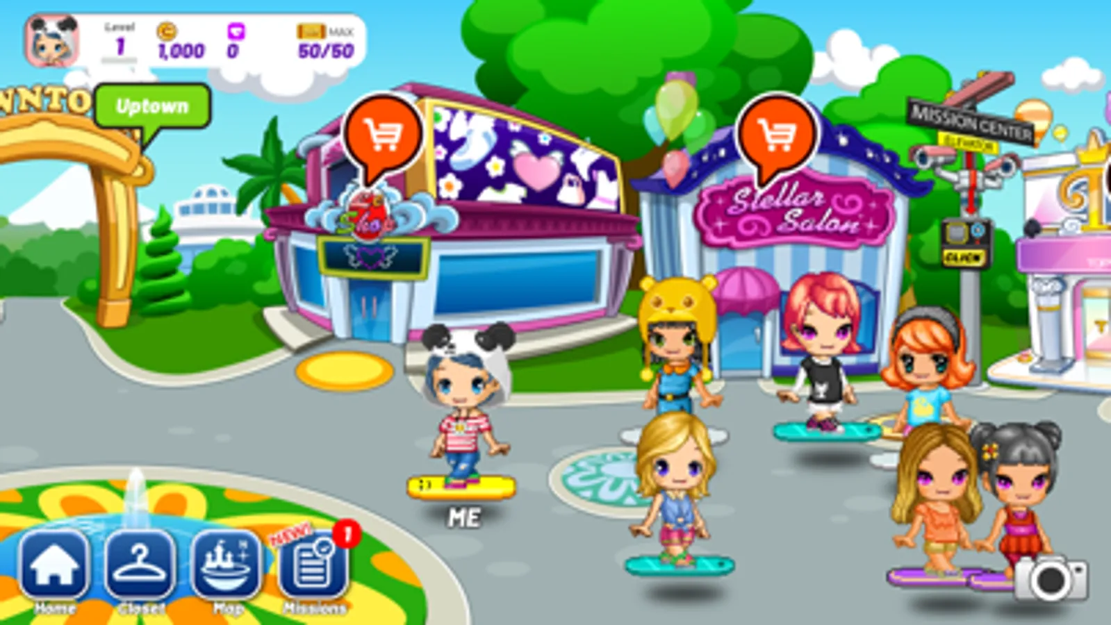 - Meet other people and play Fashion Battle together. Tap on avatars to see the combinations with the designed theme. It will be a good hint for styling! You can also play 1-on-1 Fashion Challenge with other avatars. More locations to be added soon.