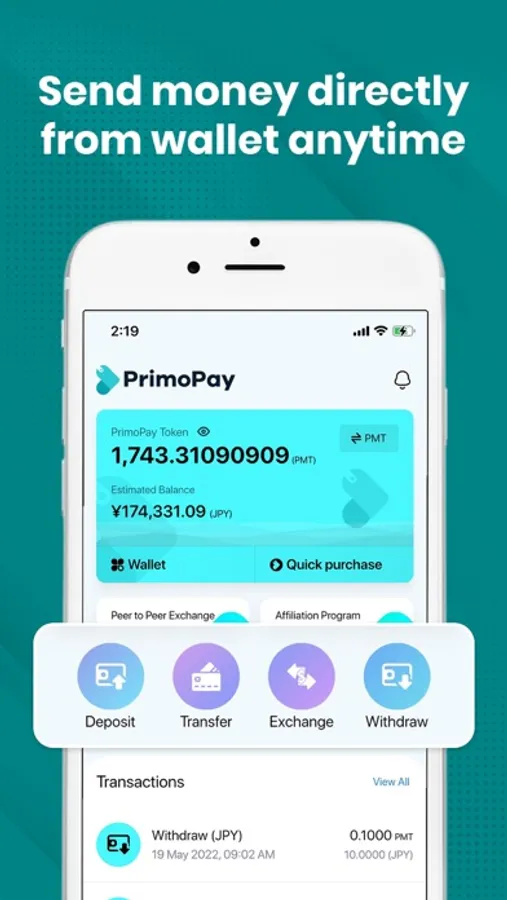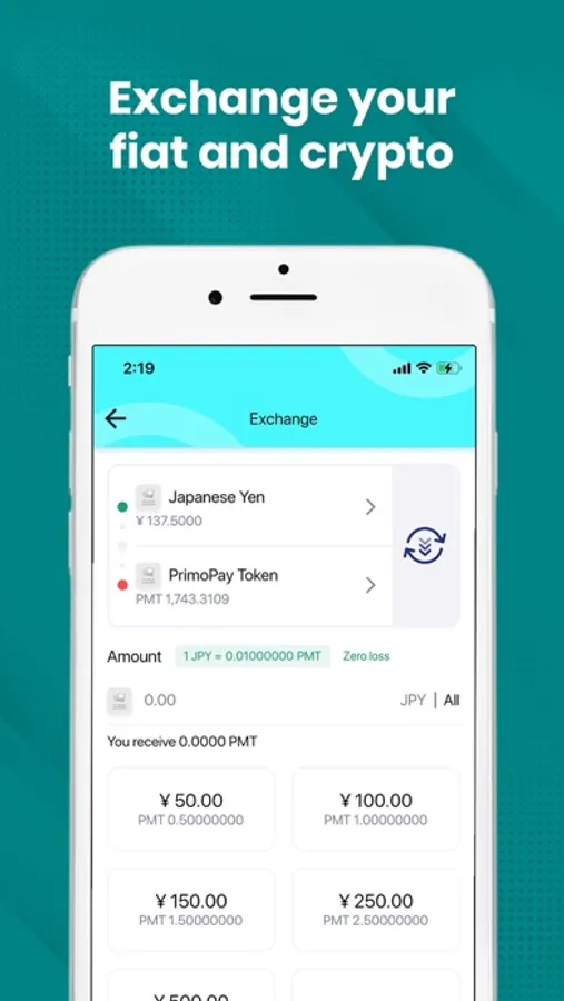 You can exchange legal tender and virtual currency with one PrimoPay wallet.