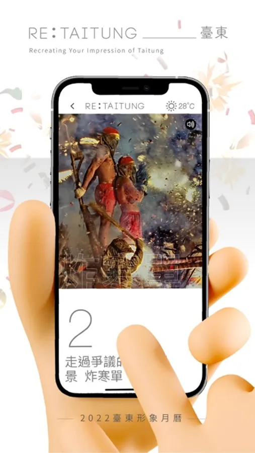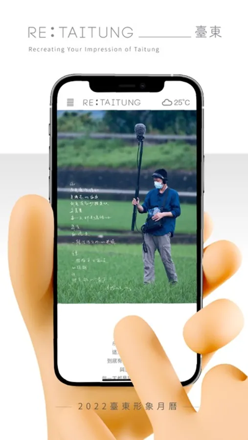 這份月曆可以用「聽」的!縣府邀請擅長以聲音為素材創作的藝術家吳燦政,為月曆設計創作一首分為12個段落的聲音輯。吳燦政親赴臺東收音,採集記錄臺東自然音韻傳遞的音符,透過後期混音、編曲,以創作者觀點重新解構又融合,期待藉由真實的聲音記錄,提升使用者立體的感受。每個月份主題搭配一段切題的聲音創作,民眾下載app後掃描插畫,即以AR互動形式聽見音樂,沈浸式感受臺東的風、海、蟲鳴鳥叫。
