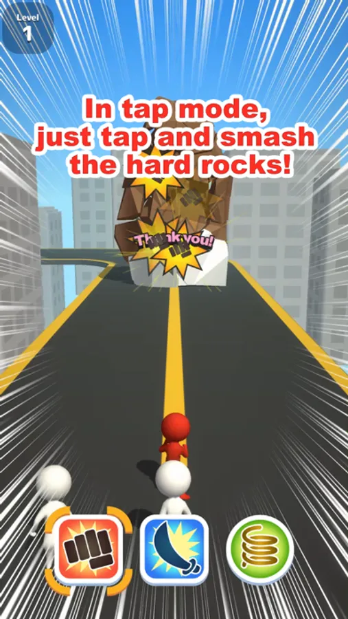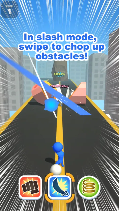 Be the hero and destroy rocks with punches, slash vehicles with slashes, and rescue people!