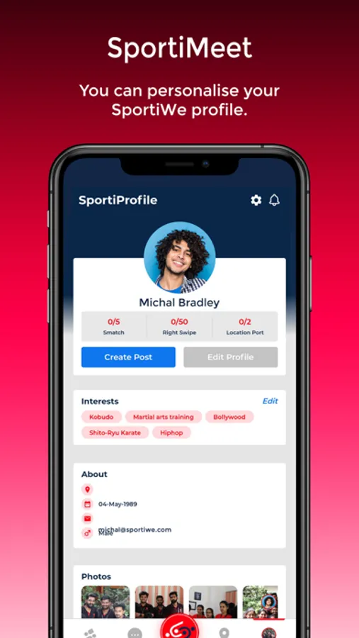 Inspired by successful dating applications, SportiWe has incorporated the swiping mechanism allowing users to find and connect to all those having comparable sporting preferences. Our community feeder section allows our users to stay updated on latest sporting developments.