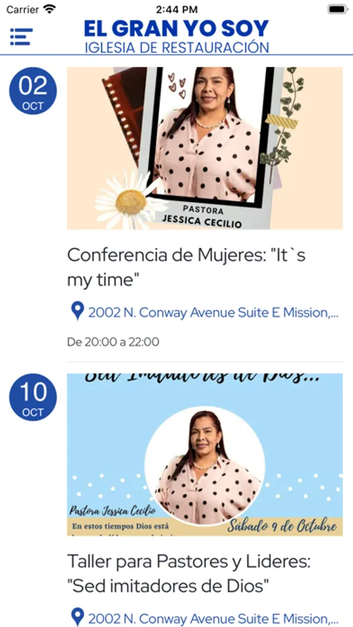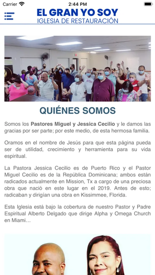 La Pastora Jessica Cecilio es de Puerto Rico y el Pastor Miguel Cecilio es de la República Dominicana; ambos están radicados actualmente en Mission, Tx a cargo de una preciosa obra que nació en este lugar en el 2019. Antes de esto; radicaban y dirigían una obra en Kissimmee, Florida.