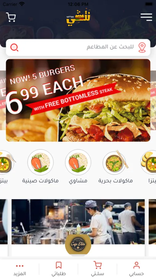 • ادخل الة تطبيق نتشي واختر مطعمًا من بين مجموعة متنوعة من المطاعم التي تقدم خدمات التوصيل في منطقتك.