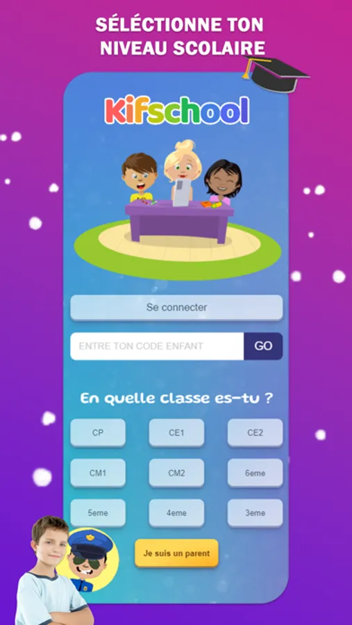 Parents, ajoutez vos différents enfants à l'application pour suivre leur progression et pouvoir jouer en famille sur l'application Kifschool.