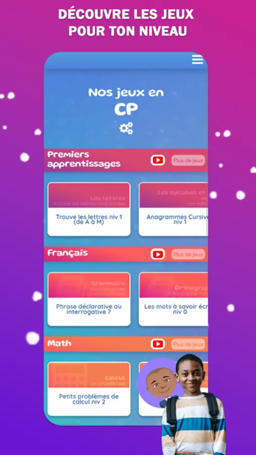 Kifschool, c'est l'application idéal pour apprendre en t'amusant grâce à nos 1200 jeux éducatifs gratuits et nos fiches de révisions à télécharger ou en vidéo.
