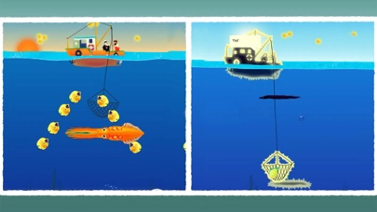 Time is money even for fishermen. Help the jolly sailors catch the fish with their net before the sunset. The faster you cope with the task, the more stars you can gain. Press and hold to drop the net, and release to roll it up. Move the finger left and right to control the vessel. Please mind that you can only have one species at a time in your net. So, the fishing game will require both accuracy and time management skill in a way. Beware of various sea creatures which may interfere with your happy fishing. For example, squids produce ink which envelopes the screen. Sharks scare away the catch, and crabs may spoil the net in a fishing clash. Though, if you play skill games a lot, you may cope with all sea dwellers easily.