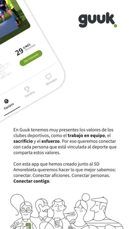 Con la creación de esta aplicación, en Guuk queremos hacer lo que mejor sabemos: Conectar. Conectar con la afición. Conectar con las personas. Conectar contigo.
