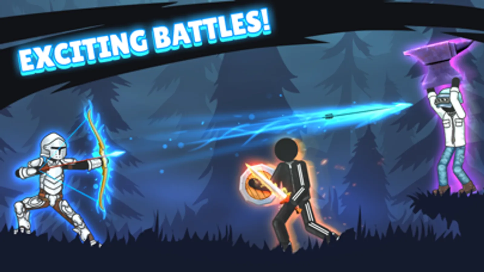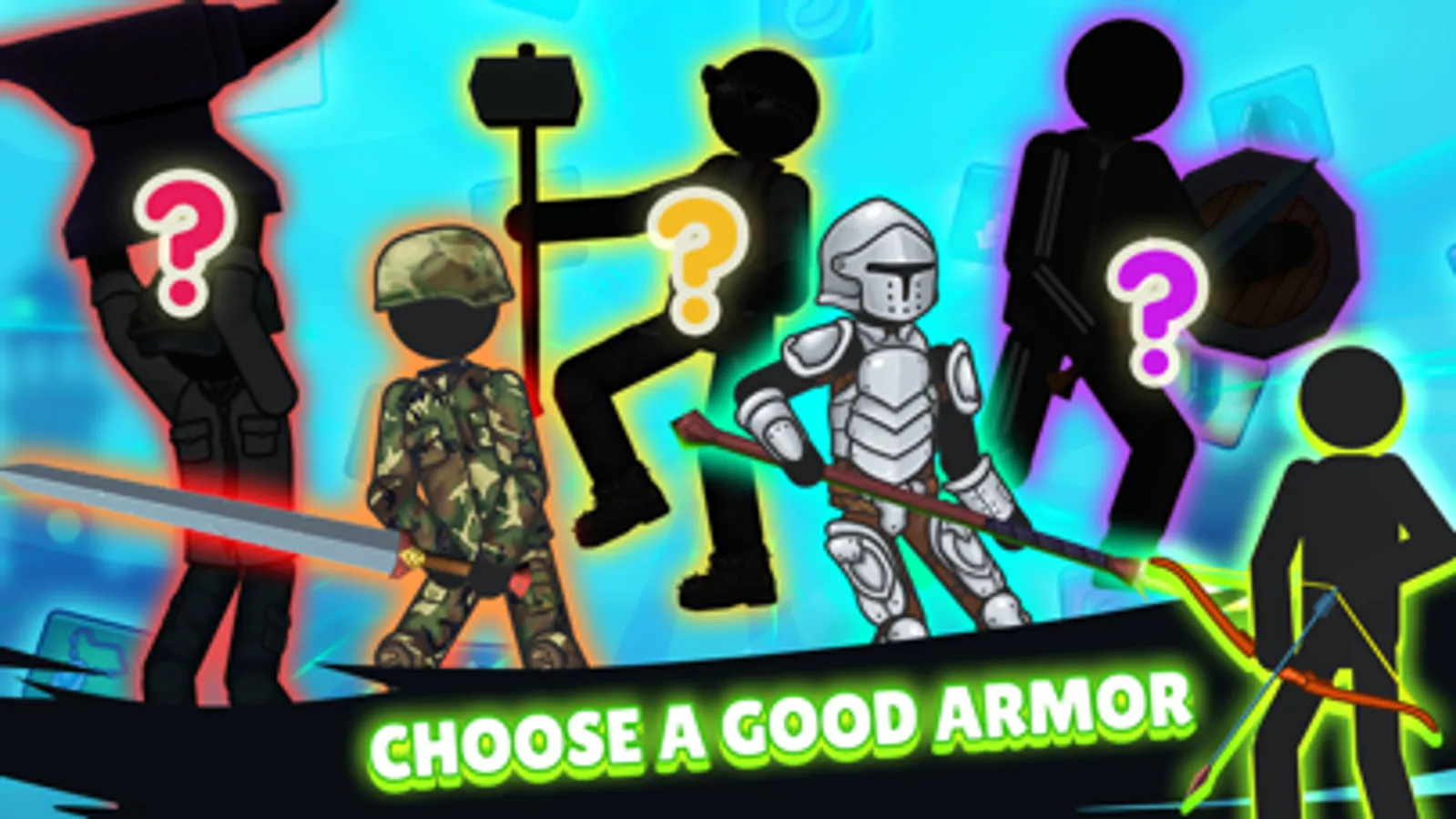 Try all the weapons and find your favorite to win every stickman war. Throwing attack with objects, earn coins, chests, and diamonds, equip the stickman with new armor, powerful spells and go into battle to shoot down opponents.